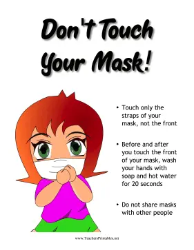 Great for classrooms during the pandemic, this printable sign reminds students not to touch their masks and gives suggestions for proper safety and hygiene.